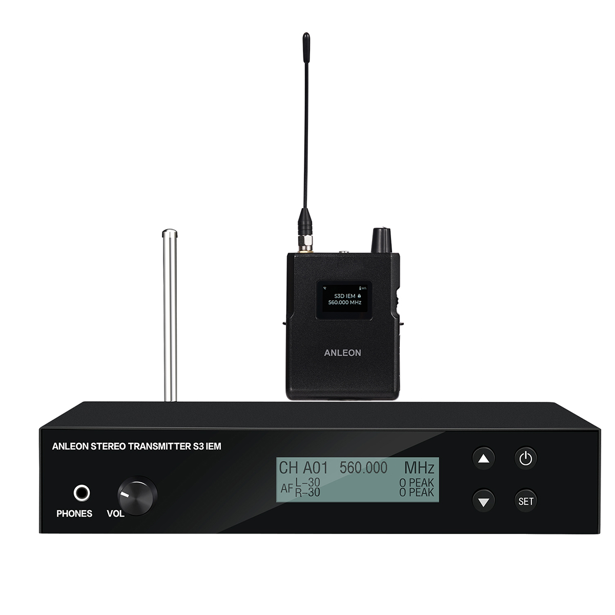 The ANLEON S3D is a stereo digital in-ear wireless monitor system consisting of the S3D beltpack receiver and the S3D transmitter. The digital system uses a 24-bit/48 kHz sampling rate and has very low stated latency.